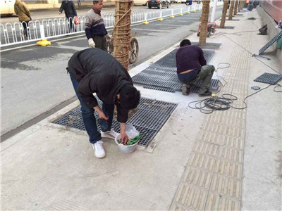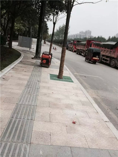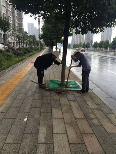沙勞動路,工人安裝切割樹篦子